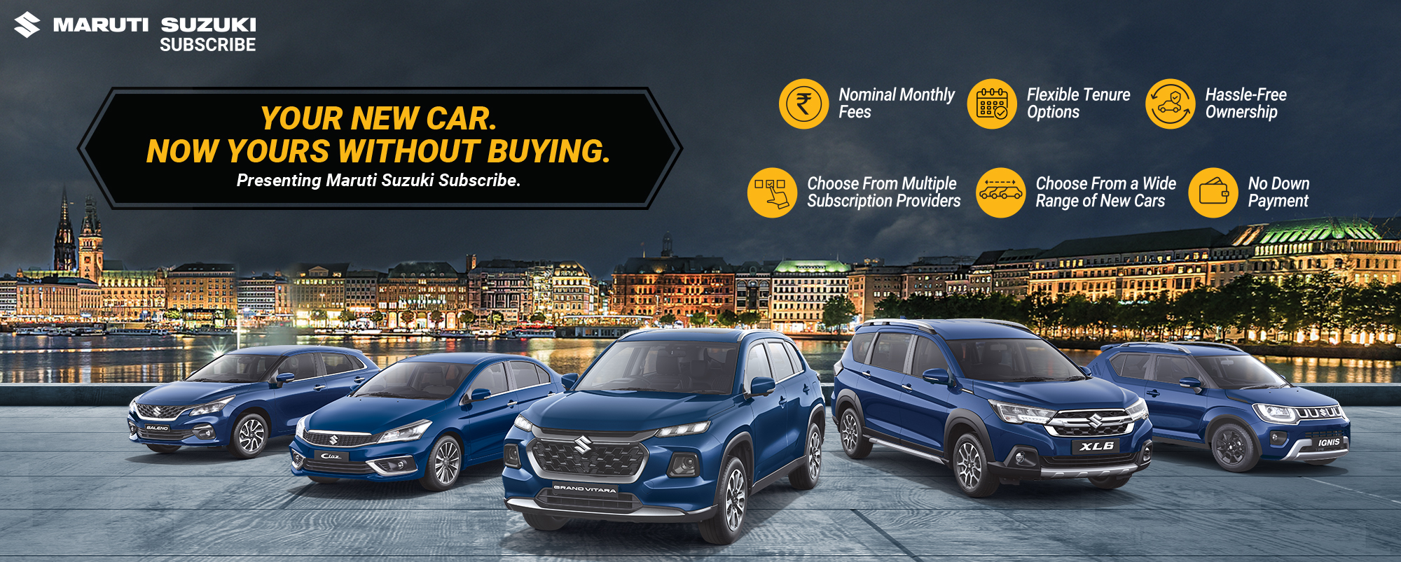 Maruti Suzuki Subscribe enables all customers to enjoy driving their preferred Maruti Suzuki cars without having to deal with all the financial responsibilities that come with owning a car.All you need to do is opt for a monthly subscription plan at a fixed monthly fee, which includes the routine maintenance and insurance costs, and choose a flexible tenure. At Raviratna Motors in, , Bharuch, all Hatchback, Sedan, SUV, the MUV models line-up includes Baleno, Invicto, EVitara, Jimny, Ciaz, Ignis, Fronx, Grand Vitara, XL6. Here, you will enjoy Maruti Suzuki Subscribe benefits such as: